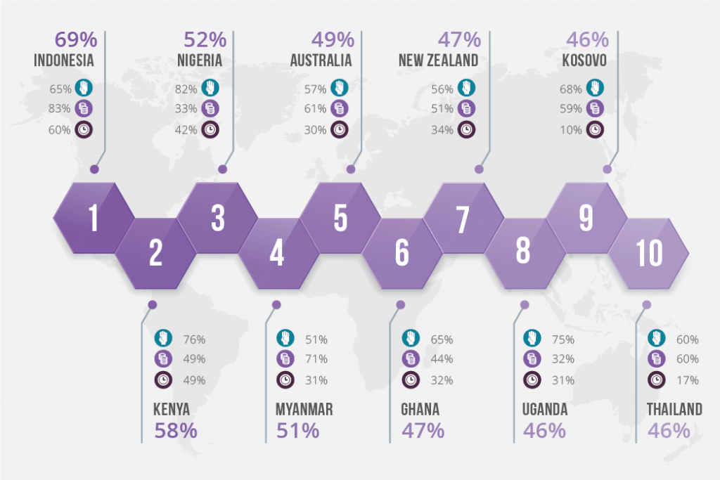Negara-negara paling dermawan di seluruh dunia menurut World Giving Index 2021 (Sumber: cafonline.org)