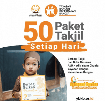 Yuk, berbagi kebahagiaan di bulan Ramadan dengan mendukung program 50 Paket Takjil Setiap Hari bersama YBKB dengan klik link ini!