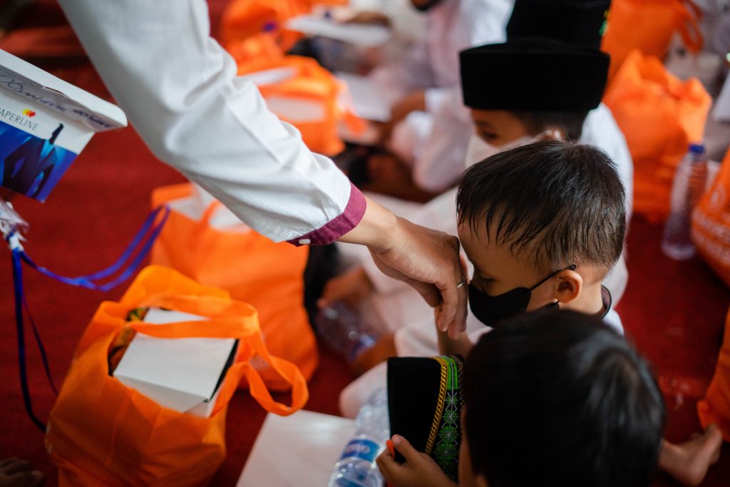 Setelah semua adik-adik bergembira bersama dan larut dalam keseruan berkisah perihal Memaknai Hijrah Rasulullah SAW dari Makkah ke Madinah, acara pun dilanjutkan kembali dengan penyaluran amanah Santunan Pendidikan dan Paket Sembako.
