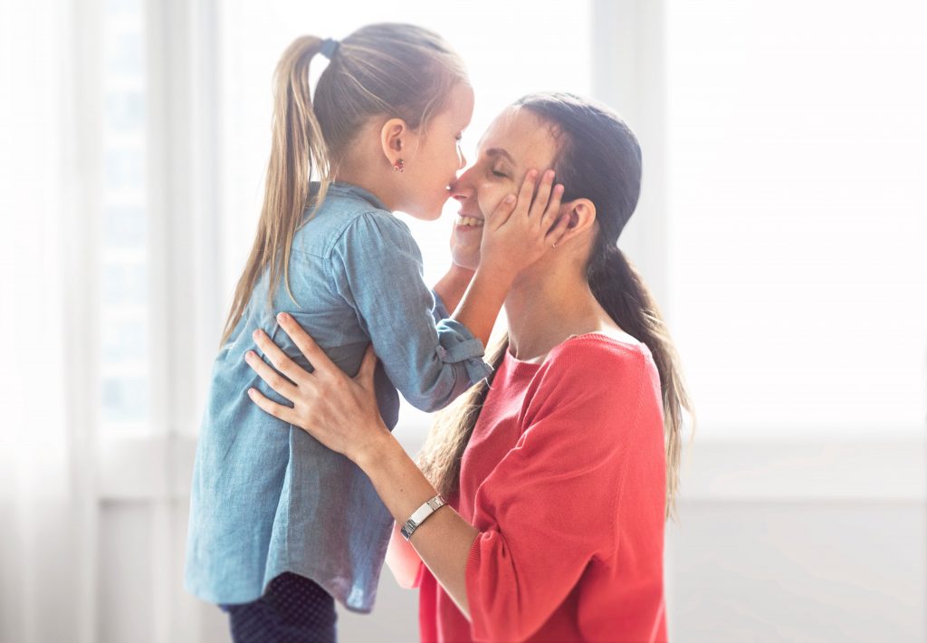 - Terhubung secara fisik melalui pelukan, ciuman atau hal lain yang menunjukkan rasa sayang sebagai orangtua.