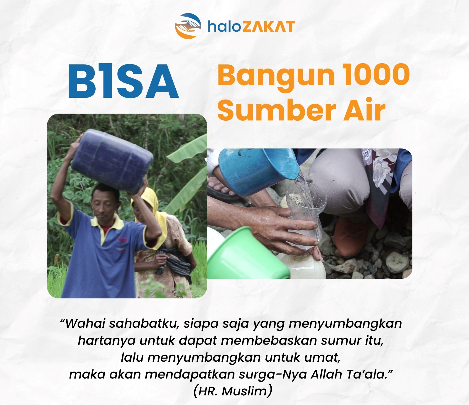 Atas dasar inilah HaloZakat berinisiatif mengadakan program Bangun 1000 Sumber Air (B1SA). Semoga dengan program ini, semakin banyak lagi masyarakat yang mendapatkan sumber air yang bersih dan dapat dengan mudah mereka akses. Tidak lagi merasa harus menempuh jalan yang panjang dan sulit untuk mendapat air, atau tidak lagi mengalami penyakit akibat air yang kotor.