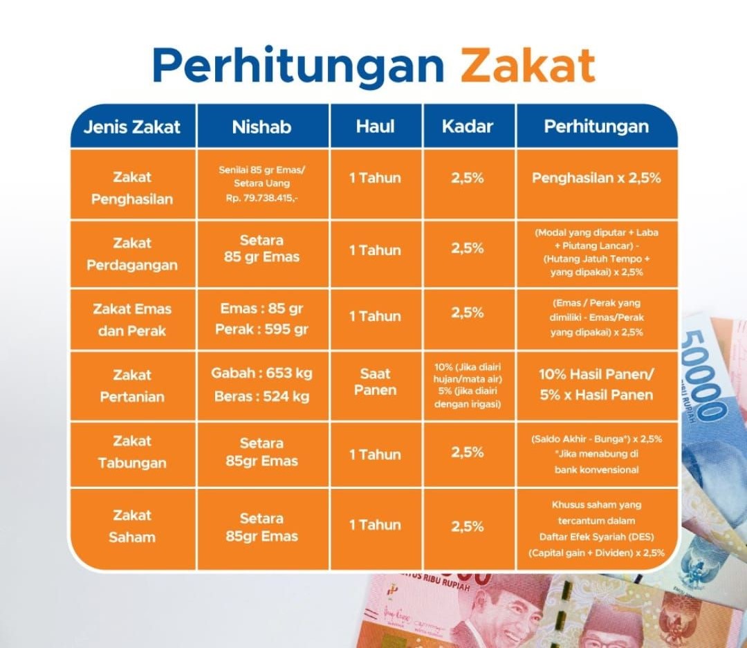 - Zakat Tabungan dan Investasi: Zakat yang dikenakan pada tabungan dan investasi keuangan lainnya.