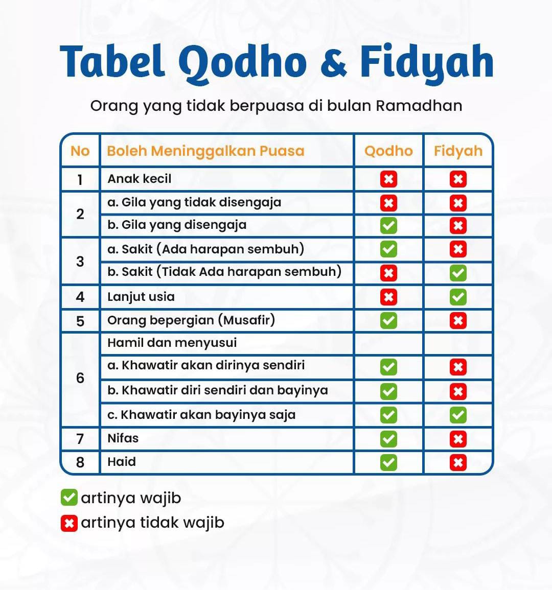 Berikut niat fidyah sesuai dengan penyebabnya: