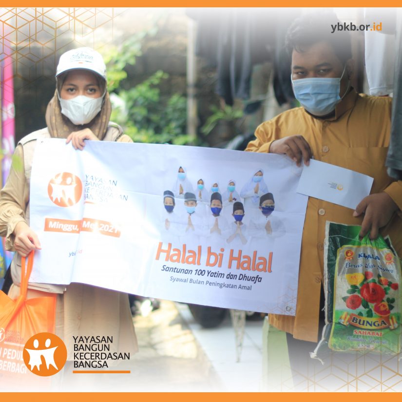 Alhamdulillah acara Halal Bi Halal dan Santunan 100 Anak Yatim dan Dhuafa terselenggara dengan lancar dengan mengundang 32 anak yatim dan dhuafa ke kantor Pusat YBKB Pasar Rebo dan pembagian santunan kepada 68 anak dengan cara diantarkan ke rumah mereka masing-masing.