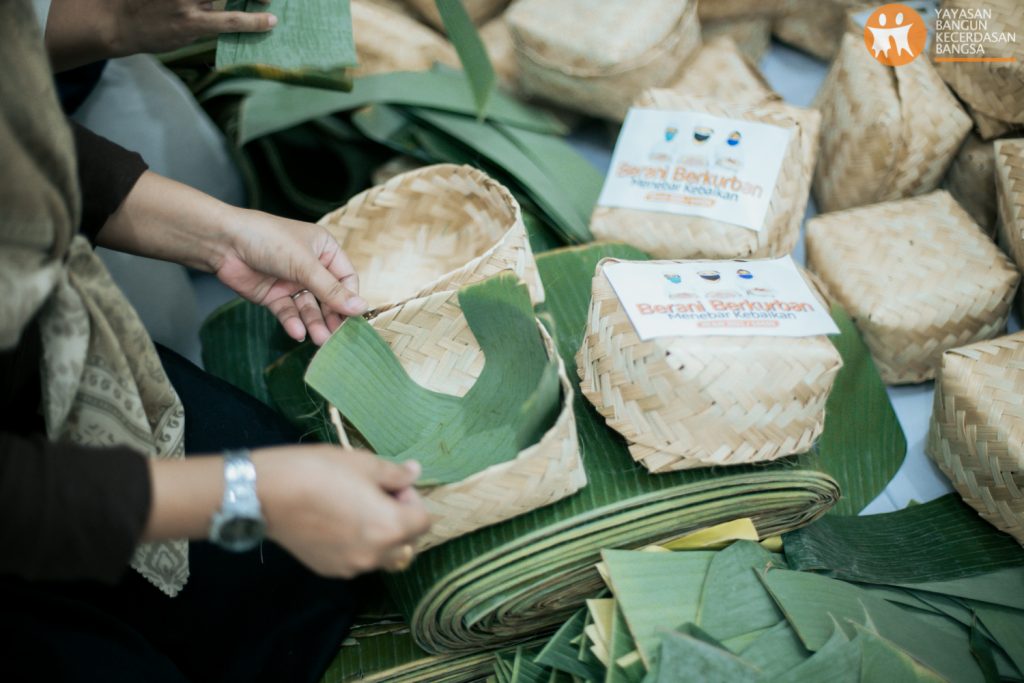 Guna mengurangi produksi sampah plastik, sejak 5 tahun ini YBKB selalu menggunakan wadah besek yang terbuat dari bambu sebagai wadah untuk daging kurban. Insya Allah dengan sedikit perubahan ini dapat membawa dampak besar terhadap lingkungan. Aamiin ya rabbal’alamiin.