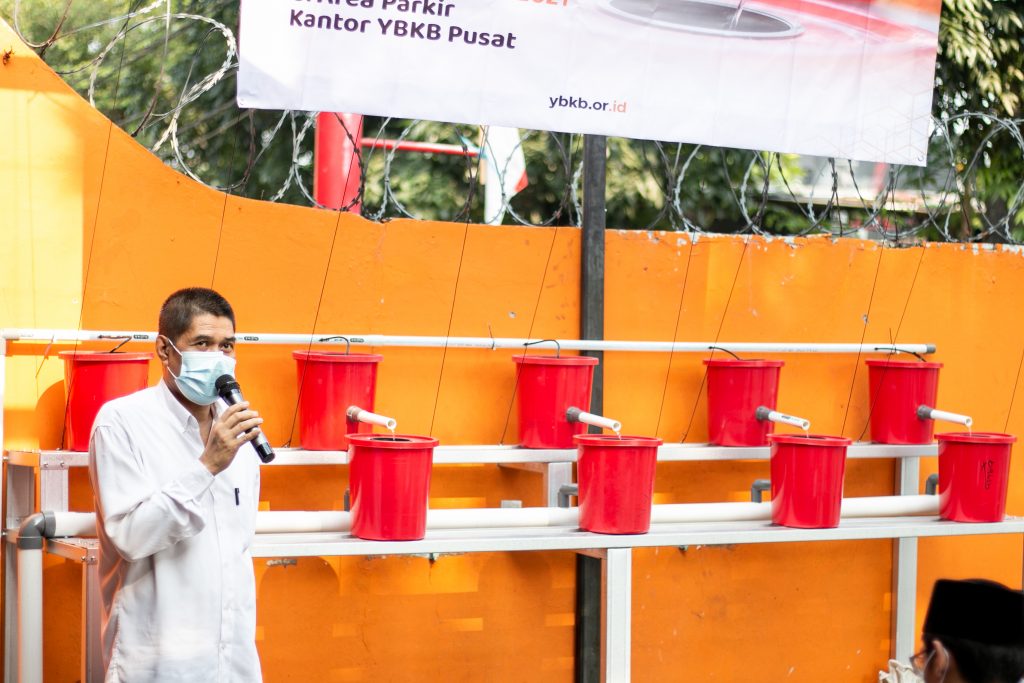Setelah sambutan dari YBKB, acara dilanjutkan dengan pemberian sambutan oleh Ketua RT 08 Kelurahan Gedong, Pak Mayadi. Pak Mayadi menyampaikan bahwa Beliau sangat berterima kasih dan senang dengan adanya kegiatan hidroponik yang dijelaskan dan dipraktikkan secara langsung karena sebelumnya belum pernah ada kegiatan seperti ini di wilayah Kelurahan Gedong.