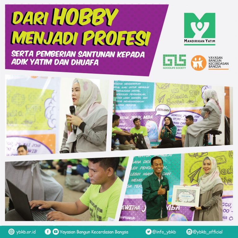 Ahad, Tanggal 29 Juli yang lalu telah berlangsung tahap 7 Mandirikan Yatim YBKB yaitu Pelatihan Kewirausahaan. Pelatihan ini mengambil tema “Dari Hobi Menjadi Profesi” dimana adik-adik yatim akan dibekali ilmu bagaimana cara berwirausaha digital sehingga dapat memperoleh penghasilan dan menjadi lebih mandiri.