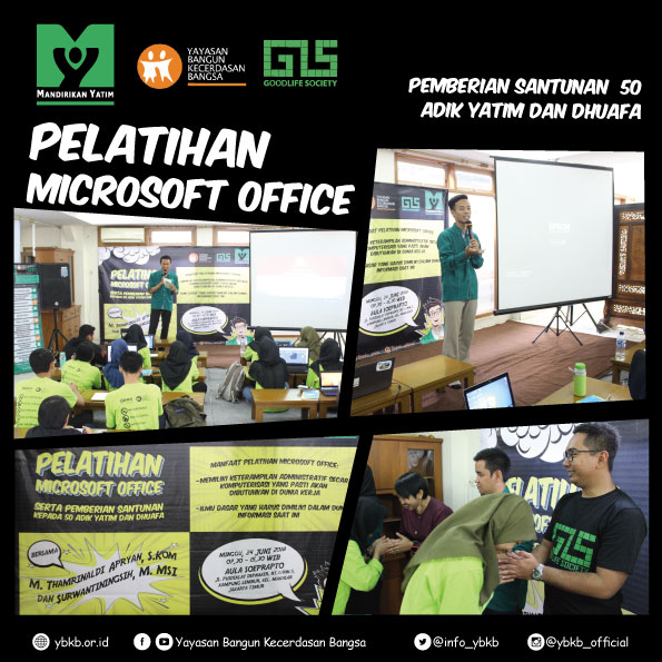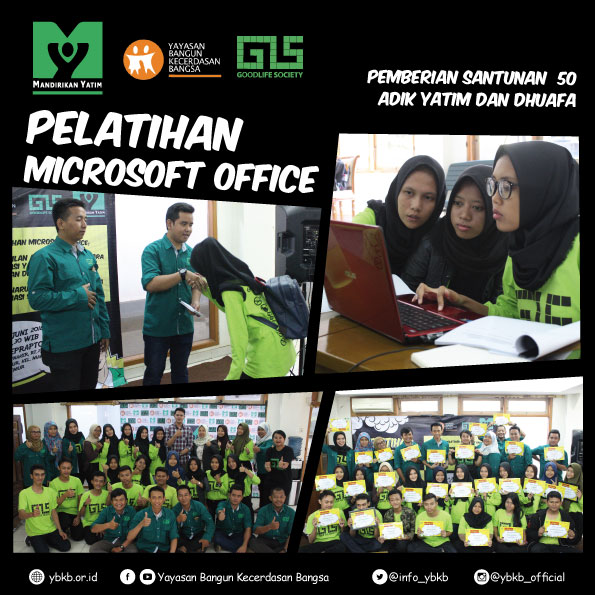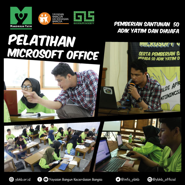 24 Juni yang lalu telah berlangsung tahap 6 Mandirikan Yatim YBKB yaitu Pelatihan Microsoft Office untuk Word, Excel, dan Power Point. Pelatihan ini dirasa perlu karena merupakan dasar untuk mengerjakan berbagai tugas adik-adik yatim ke depannya.