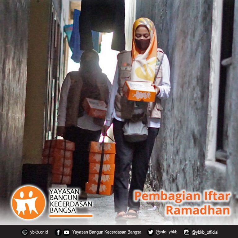 Pembagian Iftar setiap hari di bulan Ramadhan tahun ini adalah salah satu kegiatan utama YBKB ditengah kondisi Pandemi Covid-19. Melalui para relawan yang tetap penuh semangat mengantarkan paket-paket Iftar berupa Takjil dan juga Makan Besar kepada adik-adik Yatim dan juga kaum Dhuafa.