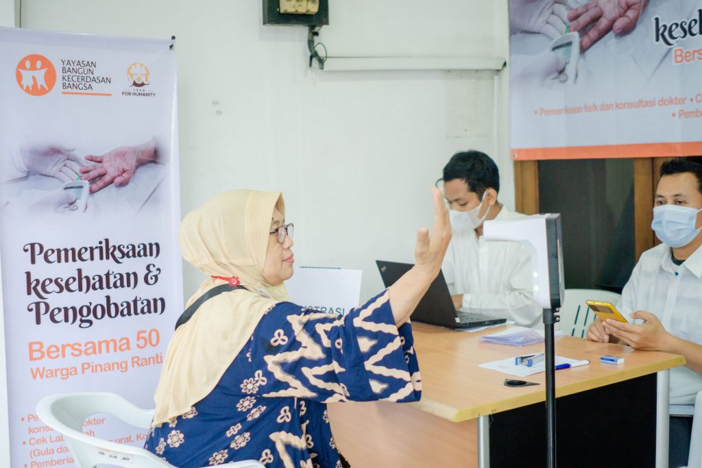 Pada 16 Juli 2022, bertepatan dengan hari jadi YBKB ke-15, telah dilaksanakan Pemeriksaan Kesehatan (Medical Check Up) dan Pengobatan bagi warga sekitar kantor operasional YBKB di kawasan Pinang Ranti, Jakarta Timur. Kegiatan ini merupakan salah satu wujud peduli kemanusiaan dan pengabdian Yayasan Bangun Kecerdasan Bangsa bagi Negeri.