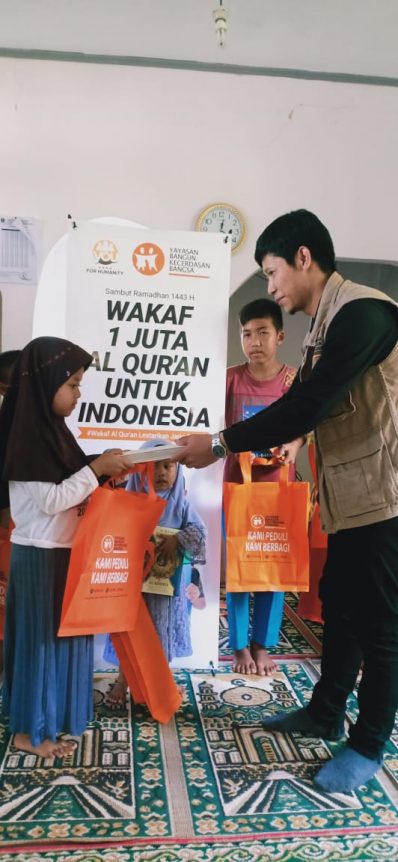 Bidang Kemanusiaan YBKB, yaitu YOU (YBKB for Humanity), telah menjadi perantara dari kegiatan penyaluran Mushaf Al Qur’an kepada santri-santri Pondok Tahfidz pada bulan Maret 2022. Mereka sangat senang dan bersyukur sekali telah mendapatkan mushaf Al Qur’an yang masih baru dan bersih.