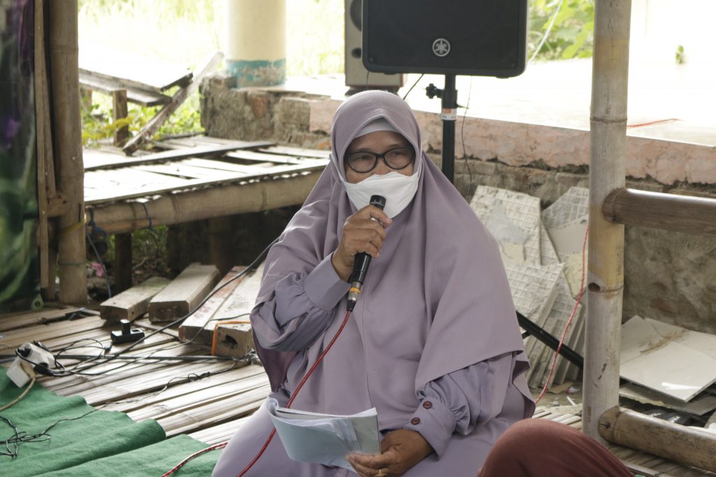 Setelah itu acara dilanjutkan dengan sambutan dari perwakilan warga Muara Gembong, Bu Markonah, sebagai tuan rumah.